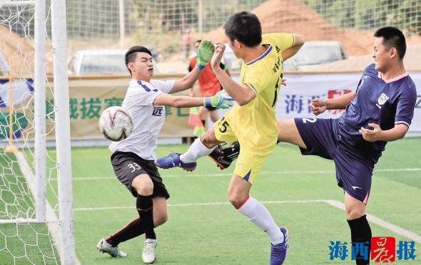 身著黃色球衣的眼科中心隊(duì)球員在對(duì)方球門前制造威脅