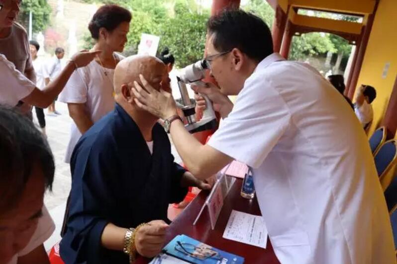 文阿姨的女兒對(duì)義診活動(dòng)大加贊賞,“趁著假期,一方面來(lái)寺院里拜拜,放空一下心情;一方面把家里的一些舊衣物拿來(lái)接濟(jì)需要的人。其實(shí),我時(shí)常參加寺里的一些慈善項(xiàng)目,比如關(guān)懷福利院兒童與老人、賑災(zāi)救難、公益環(huán)保之類的。沒(méi)想到今天遇到你們的義診活動(dòng),我們?nèi)胰硕紮z查了眼睛。消災(zāi)大法會(huì)是消災(zāi)解禍,眼疾篩查也是消災(zāi)解禍。你們這樣做公益送光明,也是功德無(wú)量。”