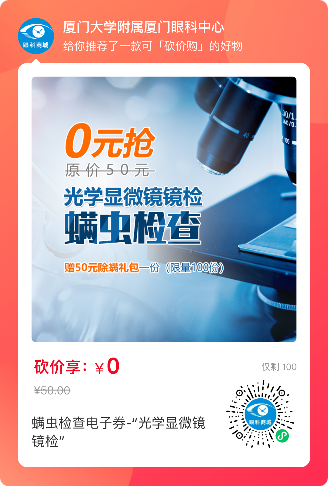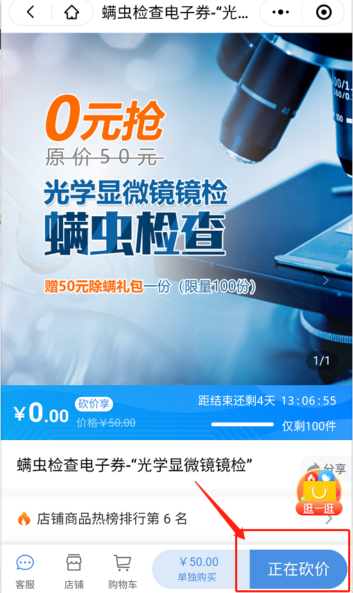 2、邀請(qǐng)10人助力砍價(jià),可0元購(gòu)螨蟲(chóng)鏡檢