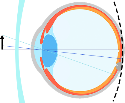 普通的單光鏡片只有一個光度(屈光度),通過鏡片看到的物體可以清晰地成像在視網膜上,但通過鏡片的周邊看物體卻成像在視網膜的后面,我們稱之為周邊遠視性離焦。
