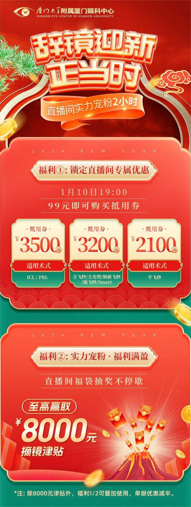 2. 直播間獎品“8000元摘鏡津貼”不可與其他優(yōu)惠同時使用。3. 單眼優(yōu)惠減半。