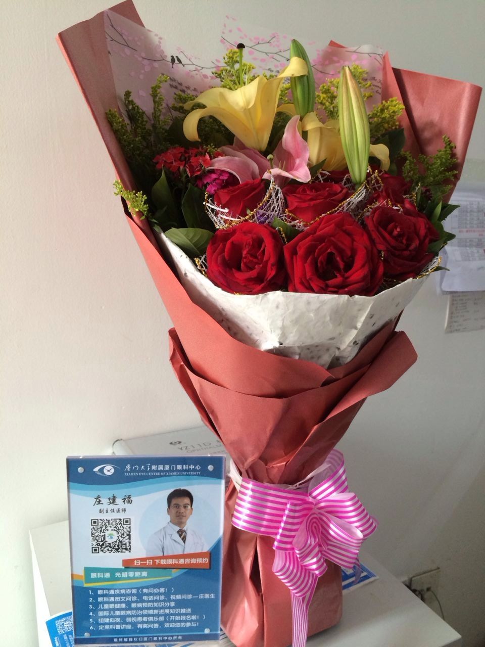 “謝謝莊醫(yī)生,真的感謝你那天中午剛做完手術沒顧上吃飯還給我孩子做檢查看眼睛,辛苦你了。“這天,一位患兒的家長將一束鮮花送到我院斜視與小兒眼科莊建福副主任醫(yī)師手中,并連聲道謝。