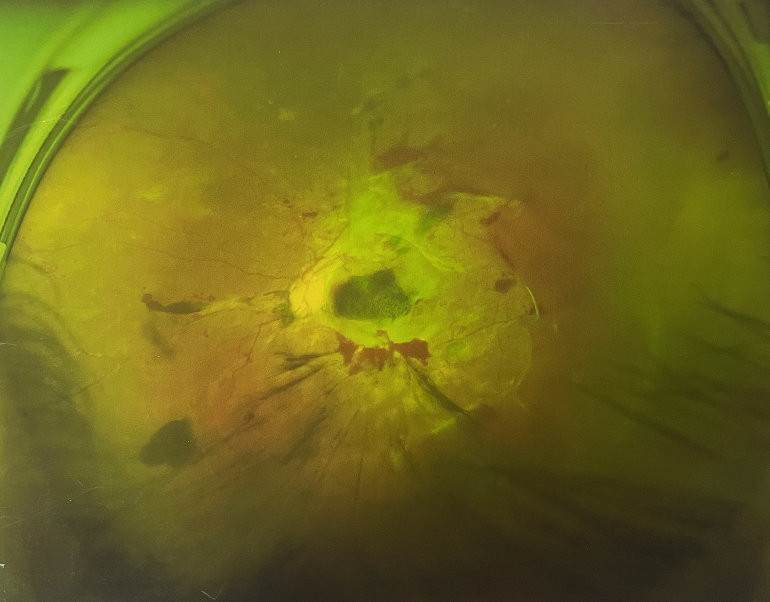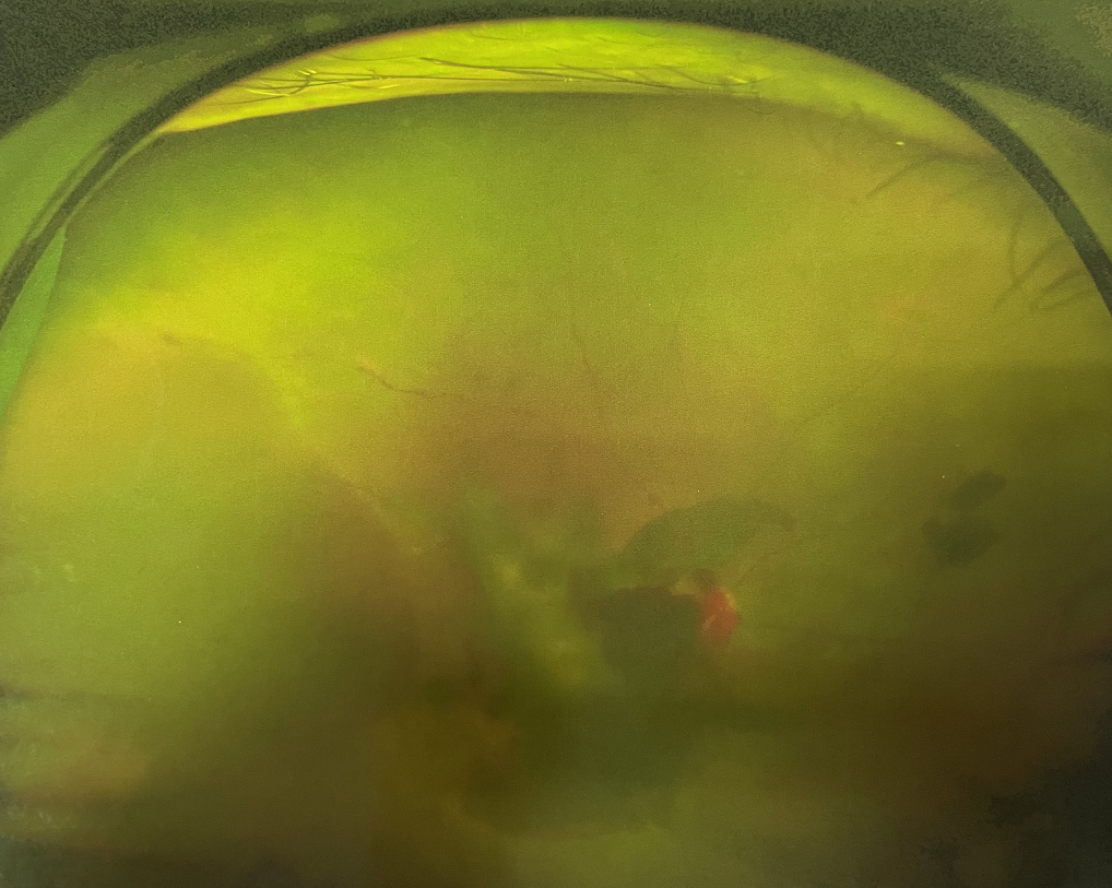 由于王女士的左眼沒(méi)有聽從醫(yī)生盡快做手術(shù)的建議,一直耽誤,從4月前的0.4視力逐漸下降到僅剩眼前手動(dòng),導(dǎo)致左眼發(fā)展到糖尿病視網(wǎng)膜病變VI期(屬于6期糖網(wǎng)中的晚期),已經(jīng)產(chǎn)生大量新生血管+纖維增值+廣泛牽拉性視網(wǎng)膜脫離,由于耽誤了病情,且病情發(fā)展異常迅速,導(dǎo)致目前左眼連保住眼球都很困難。