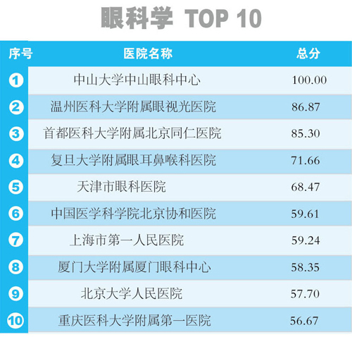 2014年度中國醫(yī)院科技影響力排行榜(眼科學(xué))