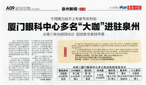 眼科醫(yī)院啦!3月16日(周三),他們將率先組團到泉州坐診!