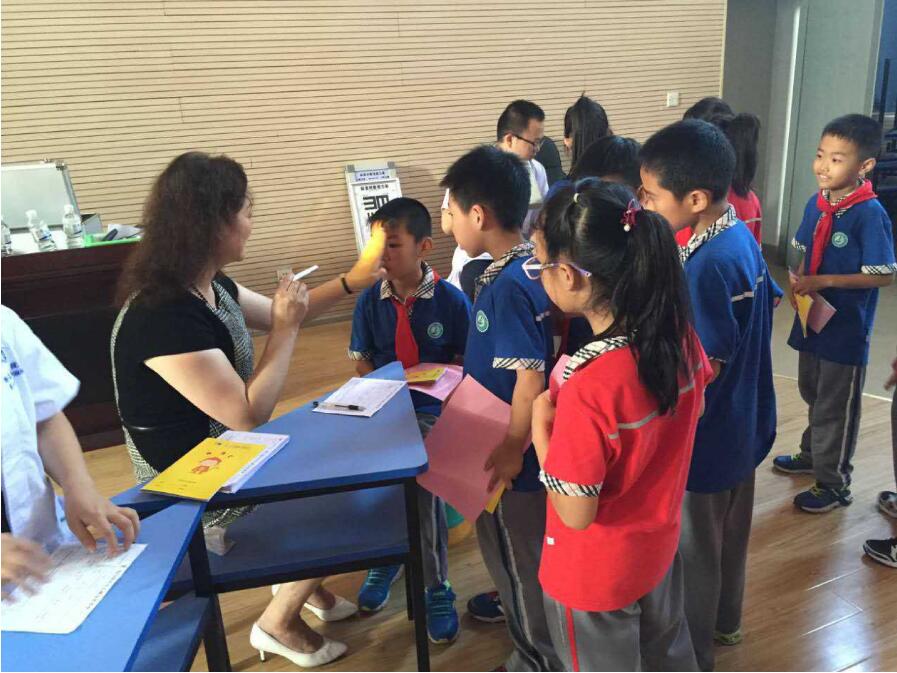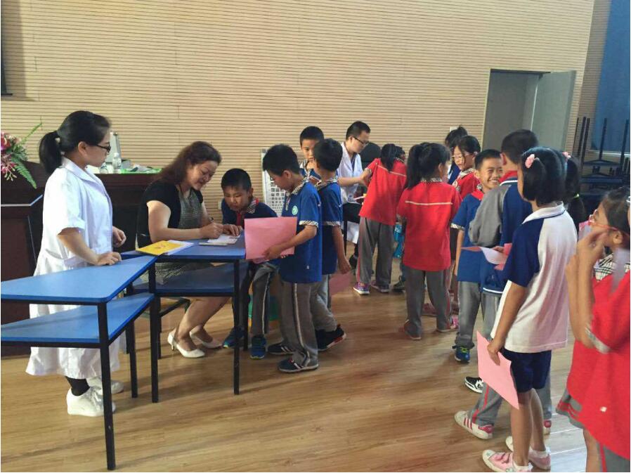 講座結(jié)束后,潘主任還為現(xiàn)場的孩子們免費(fèi)進(jìn)行眼睛檢查,孩子們的熱情很高也很配合潘主任的檢查。