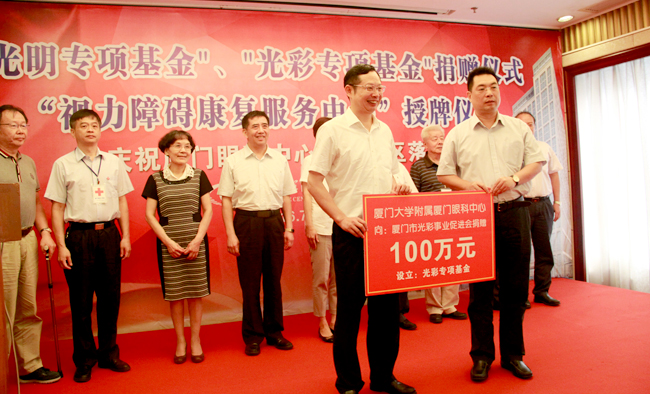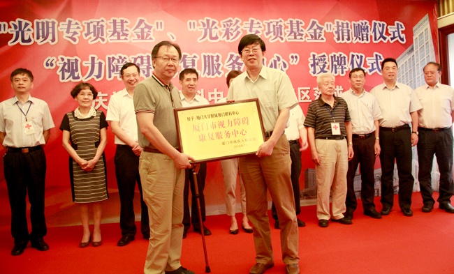 為了進一步幫助低視力人群,我院被廈門市殘聯指定為“廈門市視力障礙康復服務中心”。黃菱、陳津、鐘興國等市領導出席捐贈儀式。儀式由廈門眼科中心院長黎曉新主持。