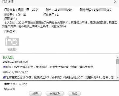 12月30日0:53,28歲的先天性白內(nèi)障患者小楊在眼科通APP上發(fā)出圖文咨詢:本人29歲,之前先天性白內(nèi)障,高度近視1300度,配鏡矯正視力0.5,2010年在某醫(yī)院做了手術(shù),剛做完時(shí)遠(yuǎn)視力0.7,現(xiàn)在后發(fā)性白內(nèi)障,視力只有0.4,看書(shū)、看電腦字小、光線不好無(wú)法識(shí)別,能不能換三焦點(diǎn)人工晶體,有沒(méi)有好的方案或建議?