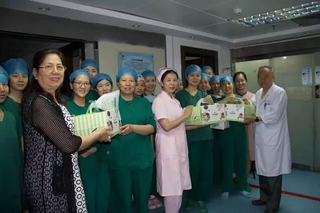 永遠(yuǎn)忙碌的白衣天使,今天依然穿梭于病房、門(mén)診、手術(shù)室、消毒室等需要她們的地方。吳國(guó)基院長(zhǎng)、陳逸恬主題帶上蛋糕、水果,來(lái)到每個(gè)樓層為堅(jiān)守崗位的護(hù)士送去慰問(wèn)、關(guān)心。