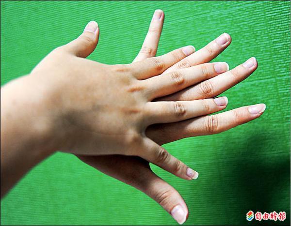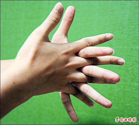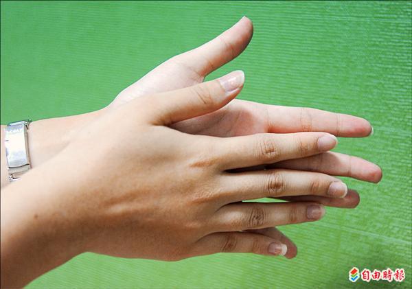 彎曲手指關(guān)節(jié)在掌心揉搓