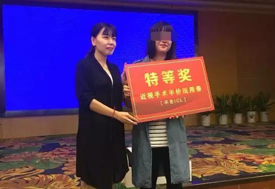活動當天,前來參加近視公益講座的青年朋友們還參加了現場的抽獎活動。早早從龍巖特意趕來參加活動的盧小姐幸運的抽中了本次活動的特等獎——近視激光手術半價。廈門大學附屬廈門眼科中心副總經理姚鄭玲玲親自為其頒獎。