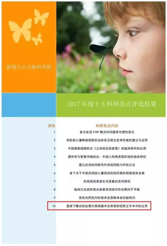 又一實(shí)力見(jiàn)證!我院潘美華教授領(lǐng)銜的斜視手術(shù)治療研究項(xiàng)目入選“中華醫(yī)學(xué)會(huì)眼科學(xué)分會(huì)斜視與小兒眼科學(xué)組2017年十大科研亮點(diǎn)”