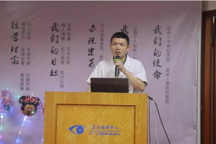 廈門(mén)大學(xué)附屬?gòu)B門(mén)眼科中心屈光手術(shù)中心科副主任黎新主任醫(yī)師為到場(chǎng)的近視患者做了一場(chǎng)專(zhuān)業(yè)、生動(dòng)、全面的近視屈光講座。