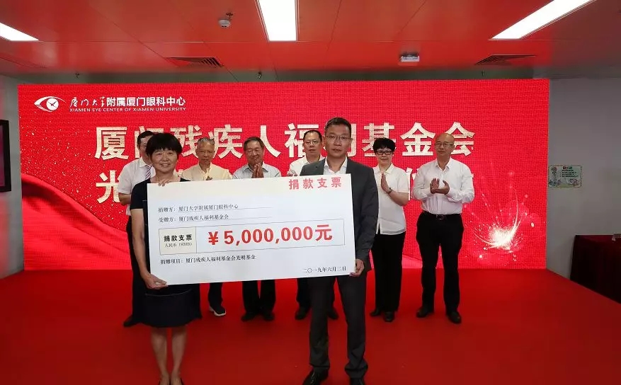 五緣院區(qū)開(kāi)業(yè)儀式上,廈門眼科中心再次將“光明的信仰”傳遞——為廈門市殘聯(lián)捐款500萬(wàn)元,成立專項(xiàng)基金,用于視力殘疾預(yù)防、眼科手術(shù)救助、盲人協(xié)會(huì)活動(dòng)等。
