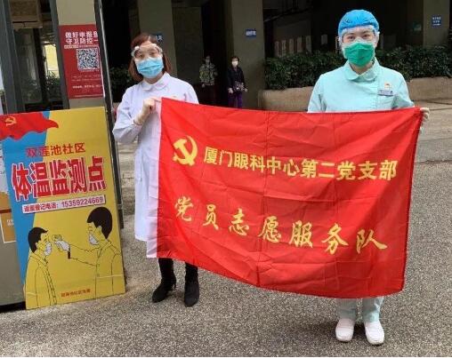 廈門眼科中心第二黨支部支部書記張美嫦:“越是困難的時候,越是體現(xiàn)支部戰(zhàn)斗堡壘作用的時候。”利用休息時間,張美嫦帶領(lǐng)支部黨員志愿服務(wù)隊,主動到社區(qū)一線體現(xiàn)志愿擔(dān)當(dāng)。勸導(dǎo)訪客,為小區(qū)出人人員測量體溫,這支溫度計里有溫度也有愛心。