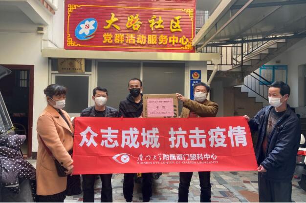 ▲廈門眼科中心為漳州市云霄縣大路社區(qū)捐贈(zèng)抗疫物資