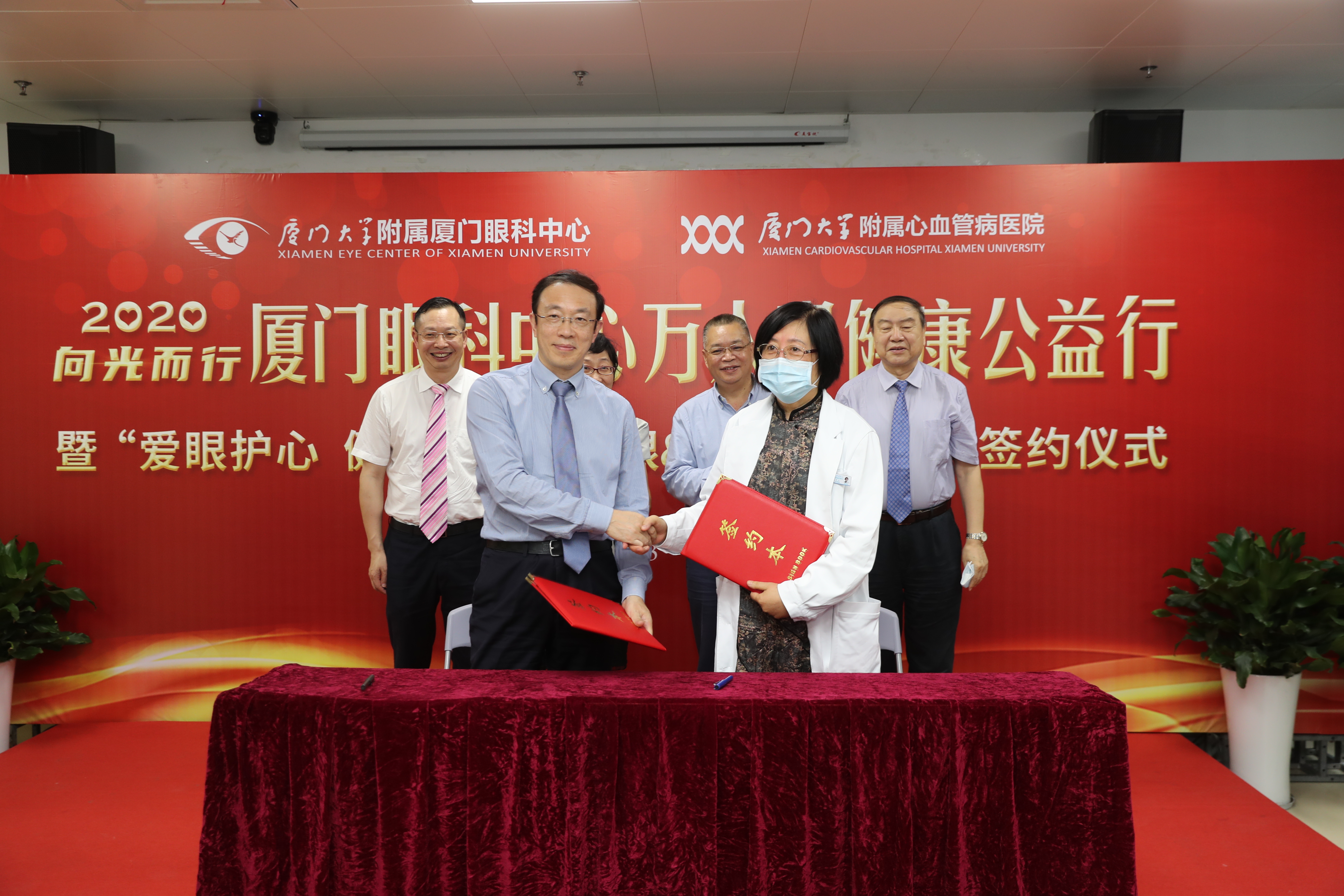 ▲廈門大學(xué)附屬心血管病醫(yī)院院長王焱、廈門大學(xué)附屬廈門眼科中心總院長黎曉新簽署戰(zhàn)略合作協(xié)議