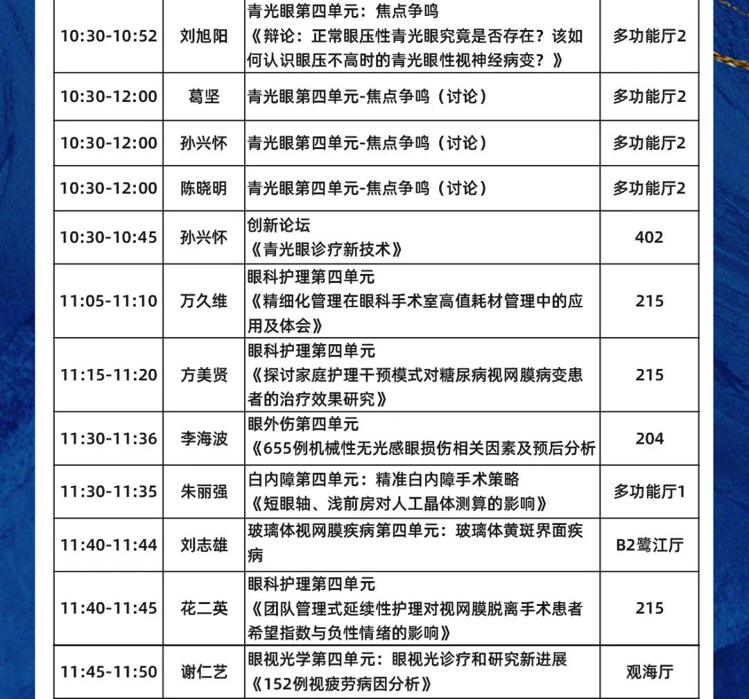 數(shù)十位廈門眼科中心專家受邀大會(huì)發(fā)言,涵蓋專題發(fā)言、論文發(fā)言、討論點(diǎn)評(píng)等。他們將圍繞眼科臨床診療新技術(shù)、新的防治措施以及科研、教學(xué)等方面的新進(jìn)展暢所欲言,多角度、多學(xué)科、多元化為眼科同道獻(xiàn)上一場學(xué)術(shù)盛宴。