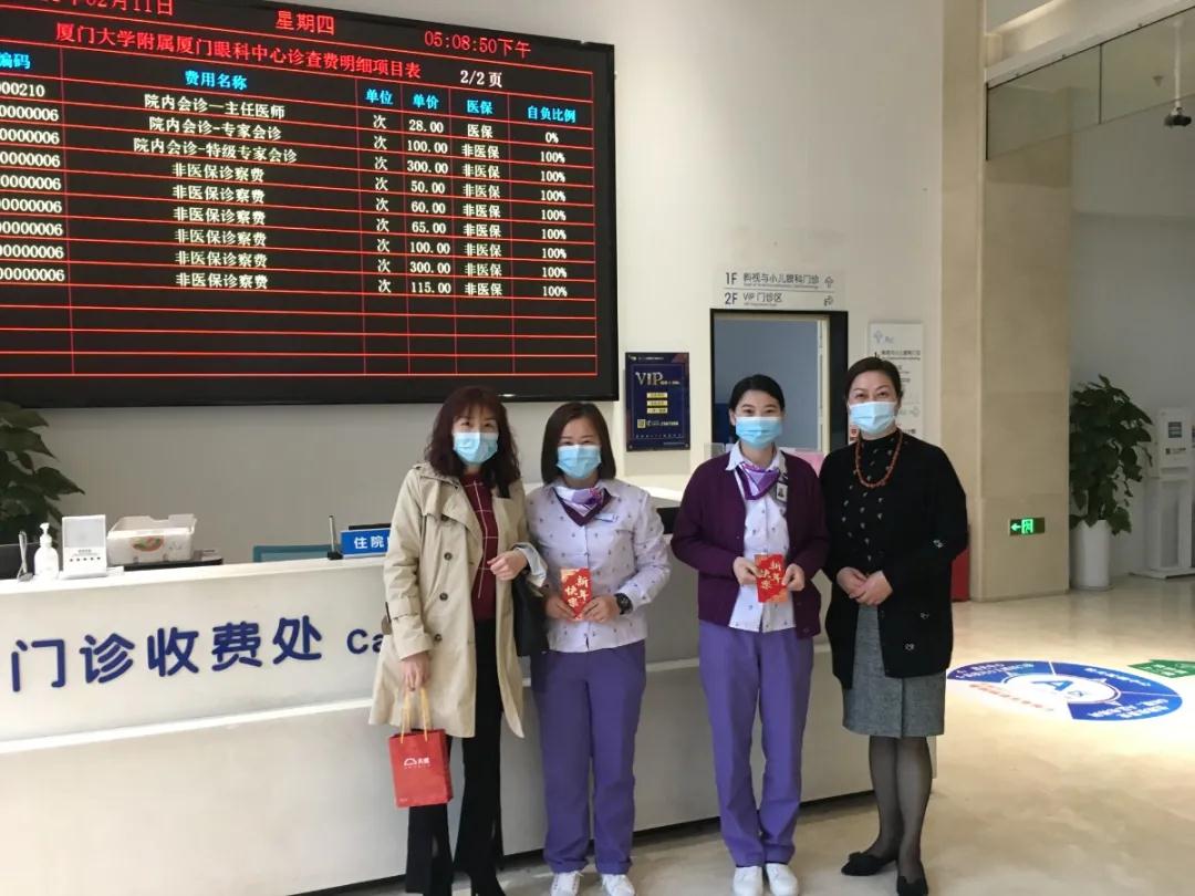 眼科醫(yī)院集團(tuán)黨委書記陳逸恬、廈門眼科中心業(yè)務(wù)副院長潘美華教授、廈門眼科中心執(zhí)行總經(jīng)理姚鄭玲玲、廈門眼科中心副總經(jīng)理黃妮婭、廈門眼科中心物業(yè)部主任洪馬超等院領(lǐng)導(dǎo)班子成員及醫(yī)院中層干部深入病區(qū),看望并慰問春節(jié)期間堅(jiān)守一線的醫(yī)務(wù)人員、值班后勤人員及住院病人,向大家送去了新年慰問品,并致以新春的問候。