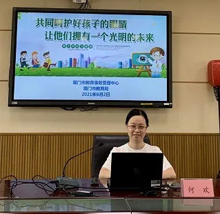 6月2日,廈門眼科中心斜視與小兒眼科副主任醫(yī)師何歡受邀為廈門全市近300名校醫(yī)培訓講解近視防控知識(線上直播)。通過講座使校醫(yī)們更加深入、科學地掌握近視防控措施,做到對學生的不健康用眼行為及時引導和干預,助力青少年視覺的健康成長。