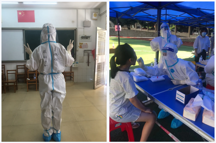 每次來做核酸檢測的人特別多,天氣又特別熱。小到幾個月的嬰兒,大到拄著拐杖的80多歲老人,看他們從烈日中來,滿頭大汗。我能做的也只有盡快撕開拆樣本包裝、盡快消毒,爭分奪秒讓他們早點回家。