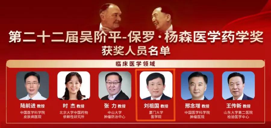 截至2021年,先后有449位優(yōu)秀醫(yī)藥衛(wèi)生工作者榮獲該項(xiàng)殊榮,其中共有38名院士。此次吳楊獎全國共有15人獲此殊榮,我院劉祖國教授為其中之一。