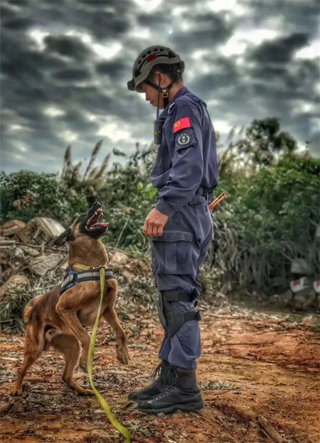 王友鵬,廈門市曙光救援隊(duì)搜救犬隊(duì)隊(duì)長(zhǎng),主要負(fù)責(zé)搜救犬的培訓(xùn)及搜救犬訓(xùn)導(dǎo)員的培養(yǎng)。日復(fù)一日,他與搜救犬一起,接受各項(xiàng)嚴(yán)酷的搜救訓(xùn)練,帶領(lǐng)搜救犬們勇敢而堅(jiān)毅地開(kāi)展各項(xiàng)災(zāi)難救援搜查工作;年復(fù)一年,他用心培養(yǎng)出了一大批國(guó)內(nèi)新生代訓(xùn)犬師,曾連續(xù)三年受邀為中國(guó)救援云南搜救犬訓(xùn)練基地培訓(xùn)授課,更是國(guó)內(nèi)首位給軍警方授課的導(dǎo)師。