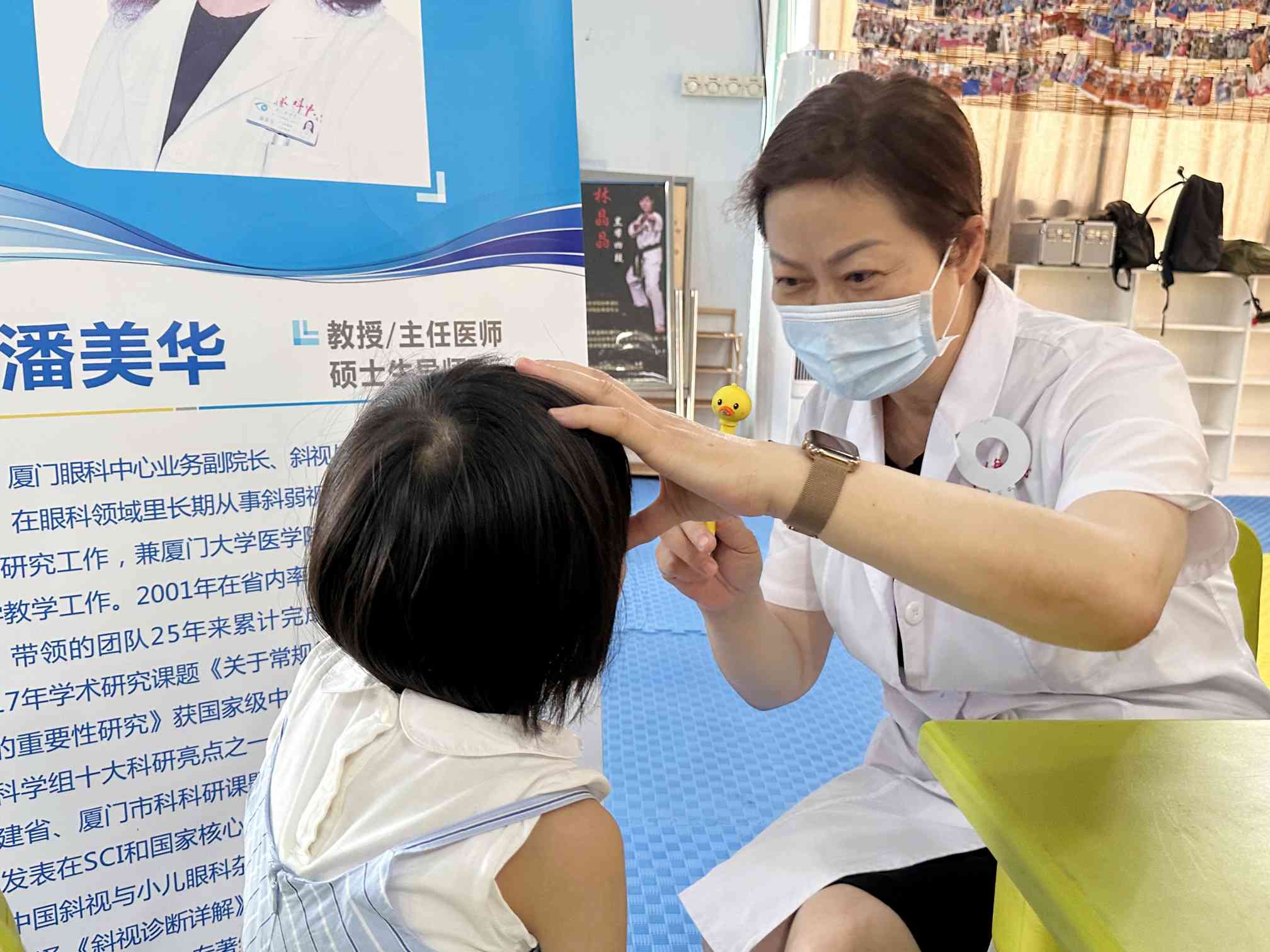 近日,為守護(hù)特需兒童的光明未來,在廈門市「愛心廈門」建設(shè)工作領(lǐng)導(dǎo)小組辦公室及海滄區(qū)殘疾人聯(lián)合會的指導(dǎo)下,廈門眼科中心「看見幸?!寡劢】倒骓椖恐驹刚叻?wù)隊在業(yè)務(wù)副院長、斜視與小兒眼病中心學(xué)科帶頭人潘美華教授的帶領(lǐng)下,來到了海滄區(qū)小海星特殊兒童服務(wù)中心,為特需兒童們開展了一場特殊的眼健康公益篩查診療活動。
