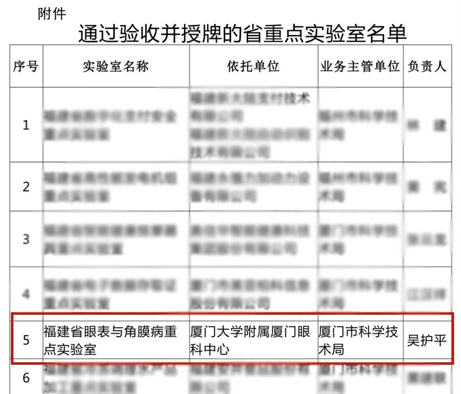 【文章導(dǎo)讀】日前,福建省科學(xué)技術(shù)廳對(duì)18家省重點(diǎn)實(shí)驗(yàn)室(企業(yè)類)開(kāi)展了驗(yàn)收工作,經(jīng)過(guò)層層嚴(yán)格評(píng)選,充分評(píng)估和集體調(diào)研后,我院建設(shè)的眼表與角膜病重點(diǎn)實(shí)驗(yàn)室成功通過(guò)驗(yàn)收并授牌!實(shí)驗(yàn)