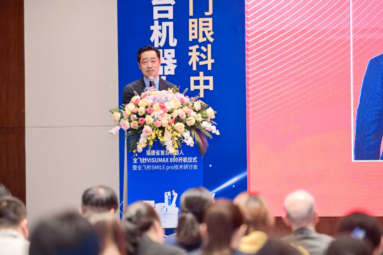 蔡司公司王建中總監(jiān)對(duì)廈門(mén)眼科中心成為新一代機(jī)器人全飛秒VISUMAX 800設(shè)備的首批裝機(jī)機(jī)構(gòu)表示祝賀。他表示新一代機(jī)器人全飛秒VISUMAX 800和新微創(chuàng)SMILE pro手術(shù)必將為中國(guó)屈光事業(yè)的進(jìn)一步發(fā)展注入新動(dòng)能。