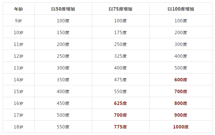 高度近視做晶體植入【文章導(dǎo)讀】一個(gè)孩子從近視發(fā)展到高度近視需要多久時(shí)間呢? 我們來做一個(gè)假設(shè),如果一個(gè)9歲的孩子近視100度,分別以每年50度、75度、100度的近視度數(shù)增長(zhǎng),結(jié)果竟然不到18歲,就已經(jīng)發(fā)展成了