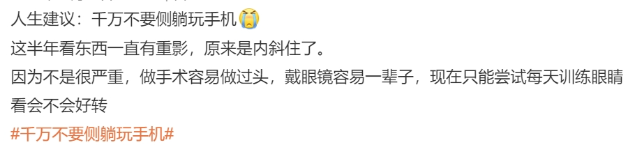 之前微博上的就曾出現(xiàn)過這條熱搜: #千萬不要側(cè)躺玩手機(jī)#
